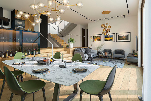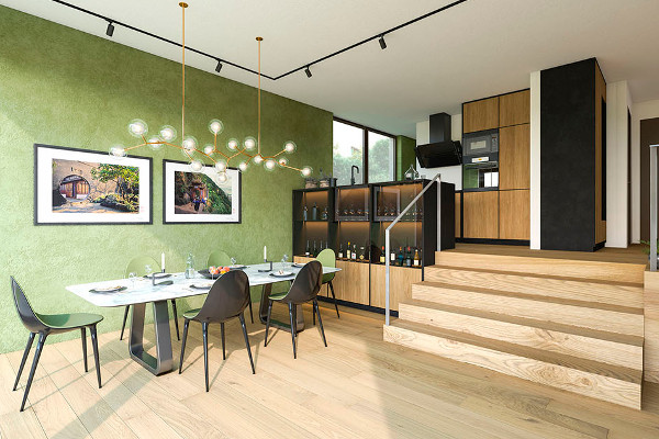 Besonderer Wert wurde auf nachhaltige Architektur und naturnahes Bauen in Hanglage gelegt. Die Wohnhäuser verbinden modernes Design mit Rücksicht auf Natur und Umgebung. Wohnkomfort und Umweltfreundlichkeit werden optimal kombiniert – von der Terrassenstaffelung bis zur Begrünung der Freiflächen.